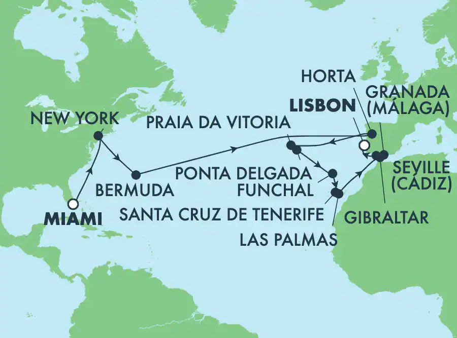 Transatlantique : les Bermudes et Espagne, de Miami à Lisbonne