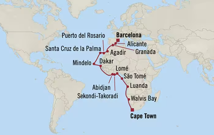 Afrique du Sud vers l'Espagne - Depuis Le Cap à Barcelone - NAU250522