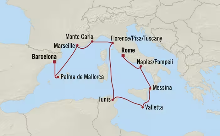 Italie vers l'Espagne - De Rome (Civitavecchia) à Barcelone - SIR251018