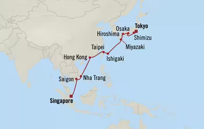 Japon vers Singapour - De Yokohama (Tokyo) à Singapour - REG241029
