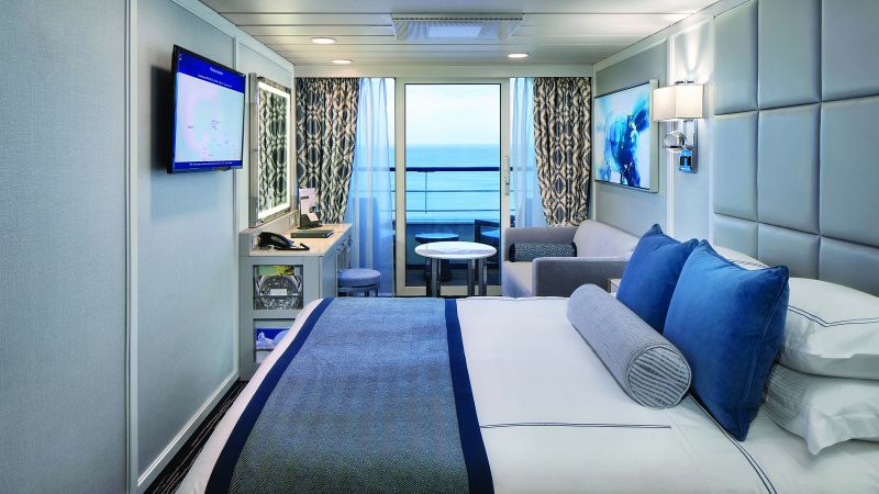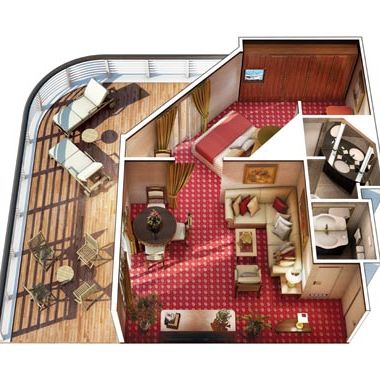 Des meubles faits sur mesure, des finitions en pierre exotique, des têtes de lit rembourrées et un éclairage chic ne sont que quelques-unes des améliorations apportées à ces cabines de 20 m2 qui disposent également d'une véranda privée en teck pour apprécier les océans aux panoramas toujours changeants. Les commodités de chaque cabine comprennent un bureau, un mini-bar réfrigéré, une table de petit-déjeuner et un coin salon spacieux.