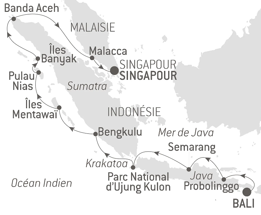 Des modifications pouvant intervenir entre le moment de l’inscription et la date de départ, nous recommandons aux passagers de vérifier les formalités de police et recommandations sanitaires auprès de leur agence de voyages ou en consultant le site de France Diplomatie.