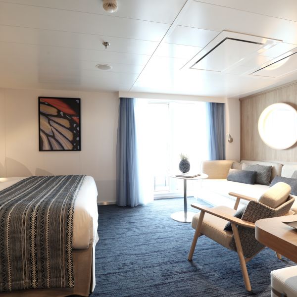 Salon sous-marin multisensoriel, le Blue Eye est une véritable prouesse technique, situé sous la ligne de flottaison. Les passagers peuvent admirer la vue sur les fonds marins, dans une ambiance feutrée et intimiste. De plus, des capteurs hydrophones situés dans la quille du navire permettent de restituer les sons captivants des profondeurs marines. Que le navire navigue dans les eaux cristallines des Seychelles ou des Caraïbes ou dans des océan polaires, l’expérience sensorielle visuelle et auditive est inoubliable !