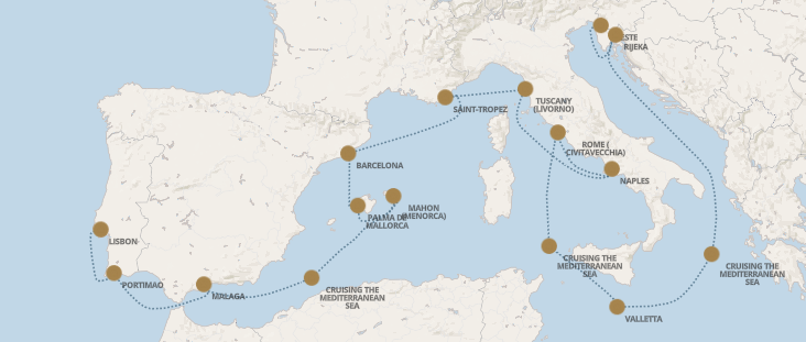 Des suites somptueuses, des espaces publics ultra-luxueux, des navires spacieux viennent compléter les prestations. L’agencement des navires évite de longs parcours entre les espaces publics et les