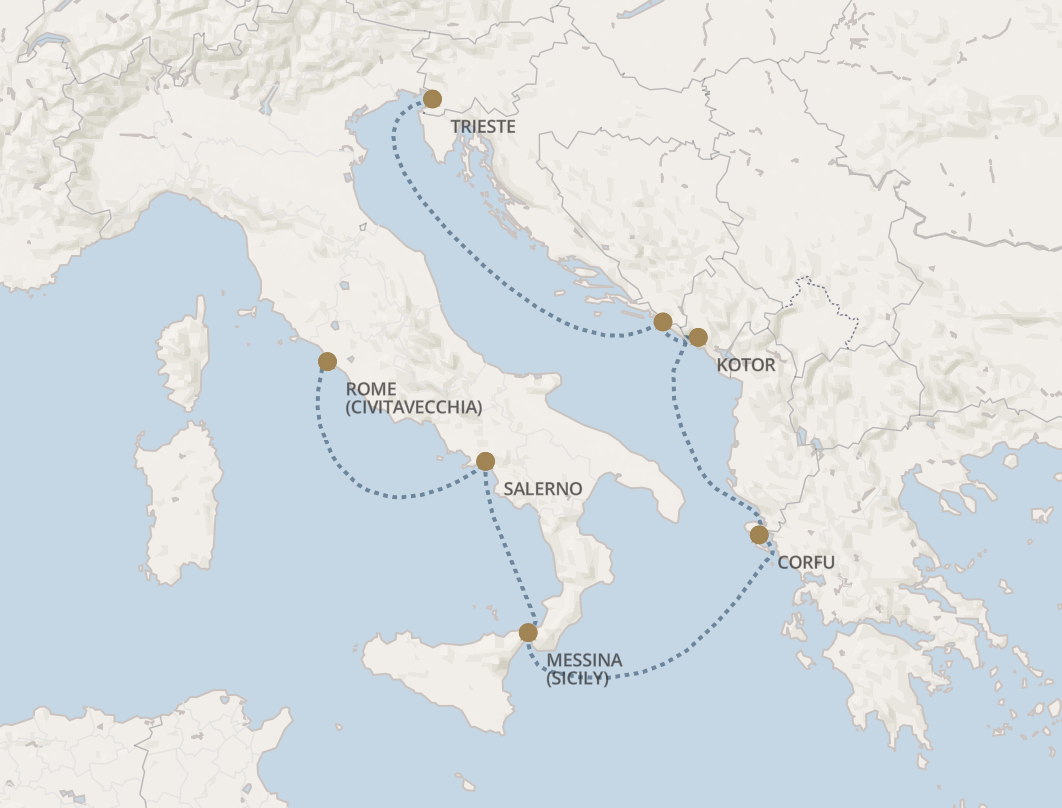 La Méditerranée, de Rome (Civitavecchia) à Venise (Trieste)