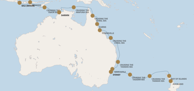 Nouvelle-Zélande vers l'Indonésie - D'Auckland à Bali (Benoa) - VOY250325