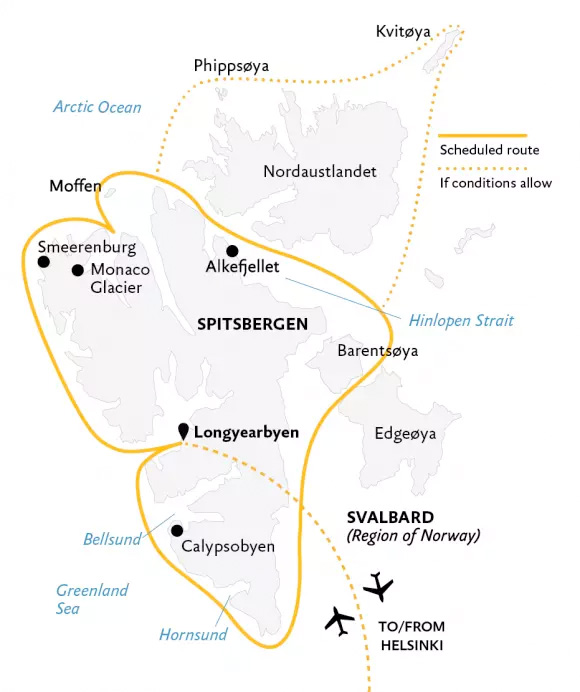 • Le vol charter aller/retour entre Longyearbyen et Helsinki