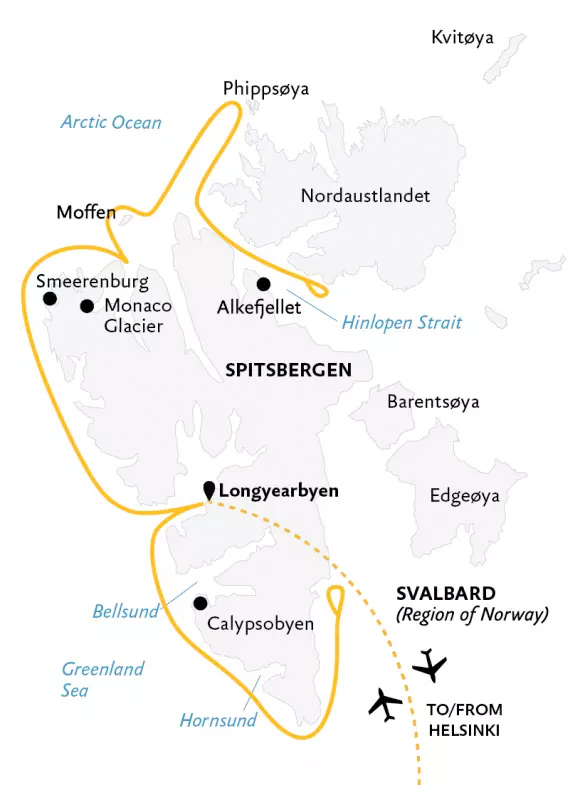 • Les vols aller/retour entre Helsinki et Longyearbyen