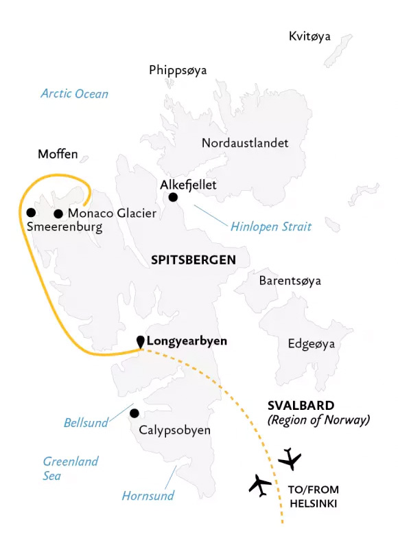 • Le vol charter aller/retour entre Longyearbyen et Helsinki
