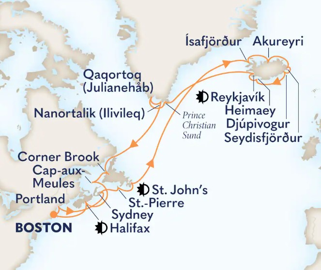 Toutes les escales et les amplitudes horaires indiquées sont données à titre indicatif et sont susceptibles d’être modifiées par les compagnies maritimes à tout moment, avant le départ ou pendant la croisière.