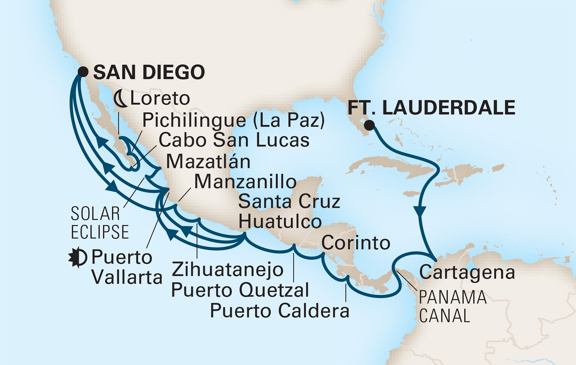 Canal de Panama et éclipse solaire de la Riviera mexicaine, de Fort Lauderdale à San Diego - X420A