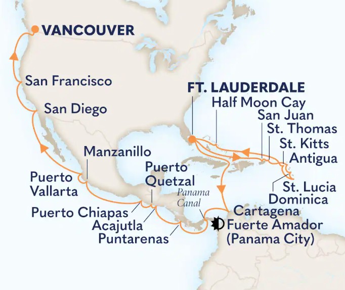 Toutes les escales et les amplitudes horaires indiquées sont données à titre indicatif et sont susceptibles d’être modifiées par les compagnies maritimes à tout moment, avant le départ ou pendant la croisière.