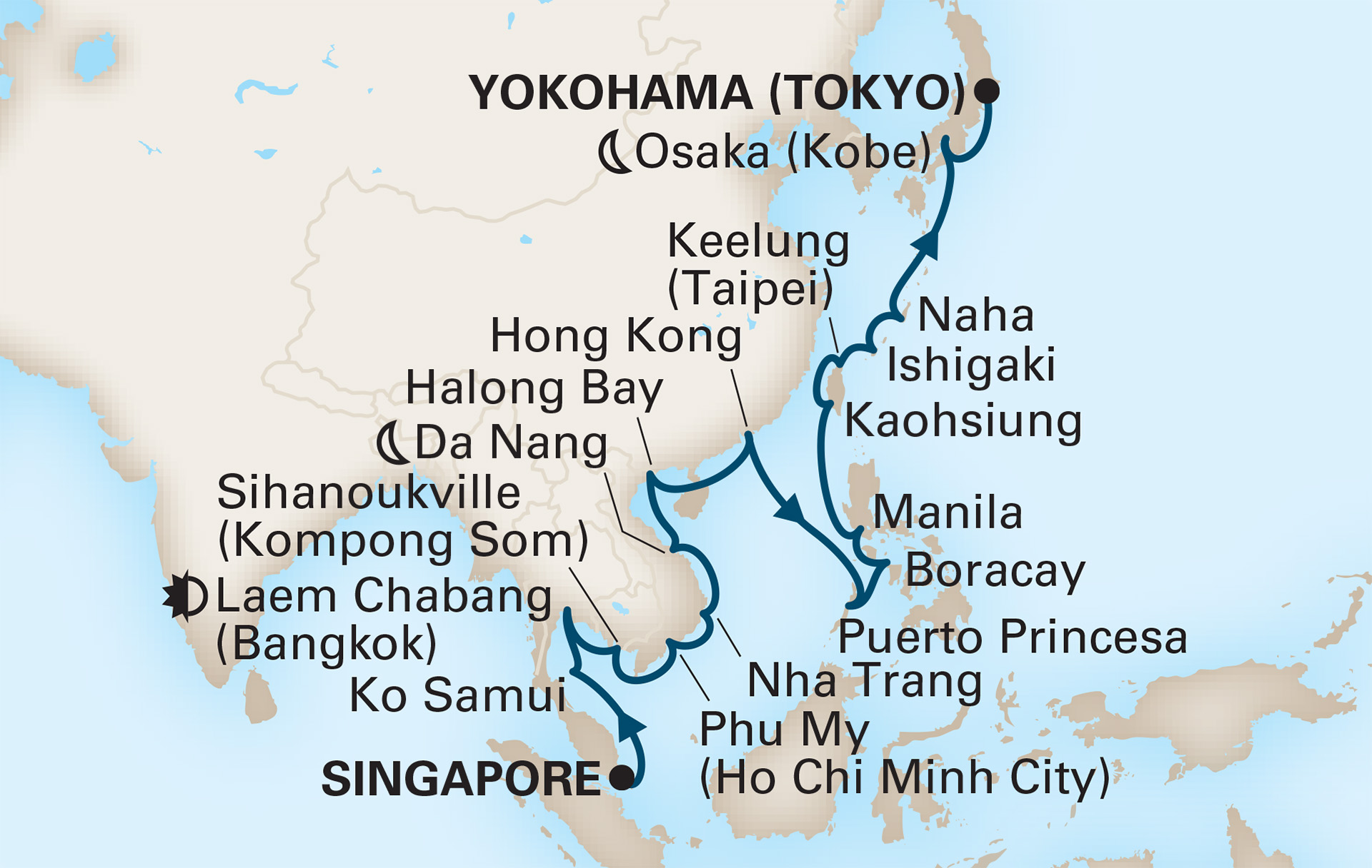 Grand Voyage : Chine, Philippines et Japon, de Singapour à Yokohama - N513A