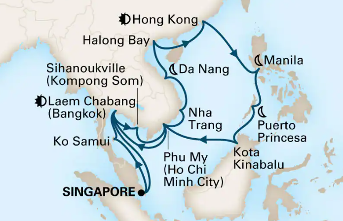 Toutes les escales et les amplitudes horaires indiquées sont données à titre indicatif et sont susceptibles d’être modifiées par les compagnies maritimes à tout moment, avant le départ ou pendant la croisière.