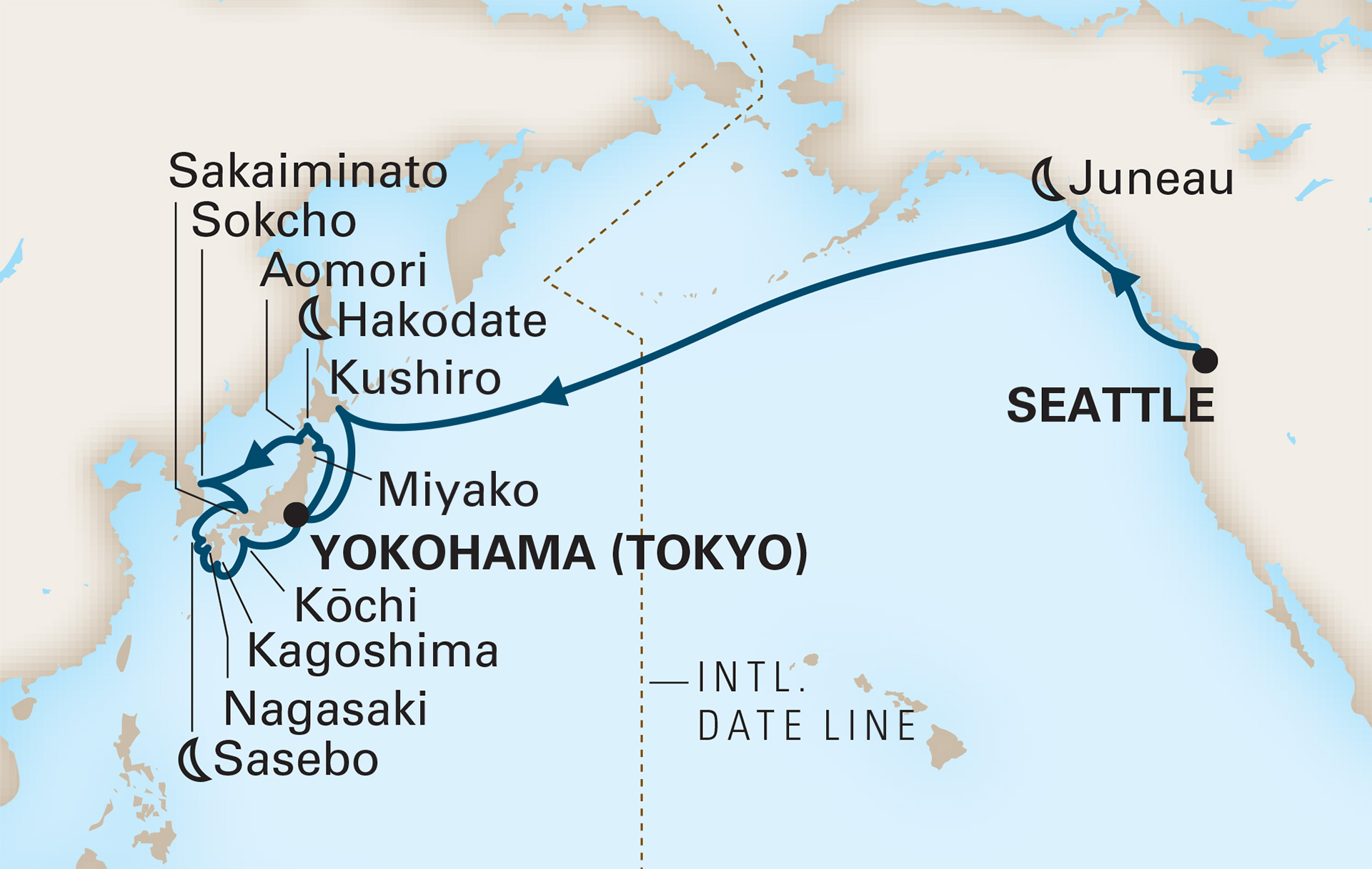 Grand Voyage : Traversée du Pacifique Nord et Japon, à partir de Seattle à Yokohama - W368A