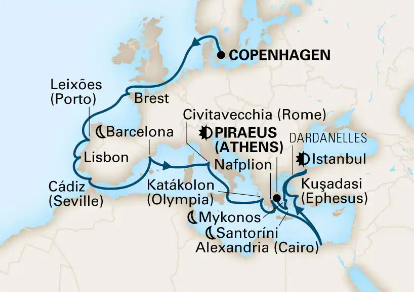 Grand Voyage : Europe, Égypte et Turquie, de Copenhague à Athènes (Le Pirée)