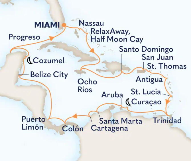 Toutes les escales et les amplitudes horaires indiquées sont données à titre indicatif et sont susceptibles d’être modifiées par les compagnies maritimes à tout moment, avant le départ ou pendant la croisière.