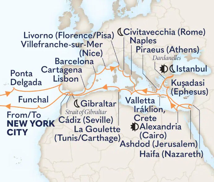 Toutes les escales et les amplitudes horaires indiquées sont données à titre indicatif et sont susceptibles d’être modifiées par les compagnies maritimes à tout moment, avant le départ ou pendant la croisière.