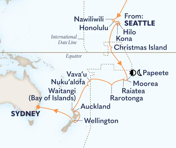 Toutes les escales et les amplitudes horaires indiquées sont données à titre indicatif et sont susceptibles d’être modifiées par les compagnies maritimes à tout moment, avant le départ ou pendant la croisière.