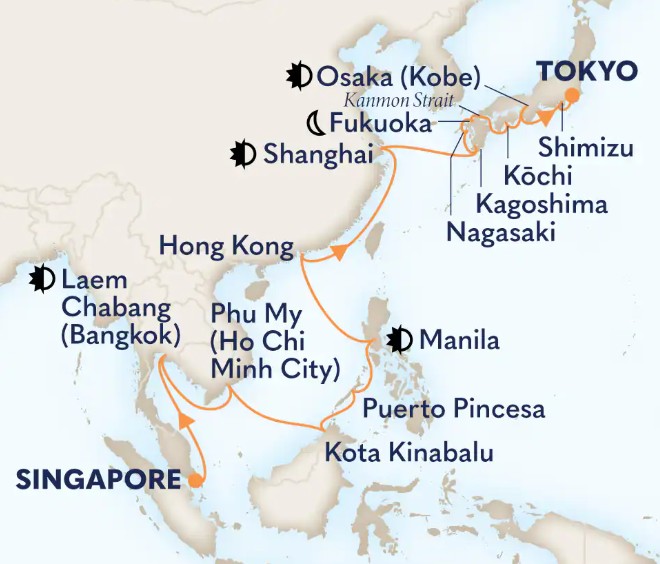 Toutes les escales et les amplitudes horaires indiquées sont données à titre indicatif et sont susceptibles d’être modifiées par les compagnies maritimes à tout moment, avant le départ ou pendant la croisière.