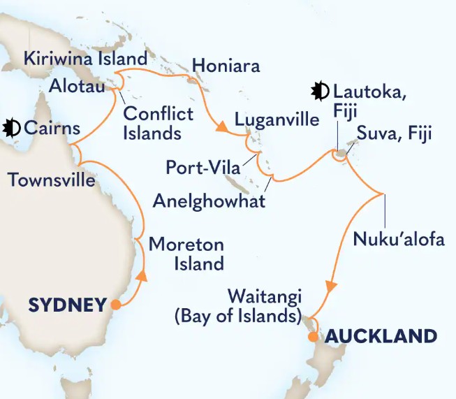 Toutes les escales et les amplitudes horaires indiquées sont données à titre indicatif et sont susceptibles d’être modifiées par les compagnies maritimes à tout moment, avant le départ ou pendant la croisière.