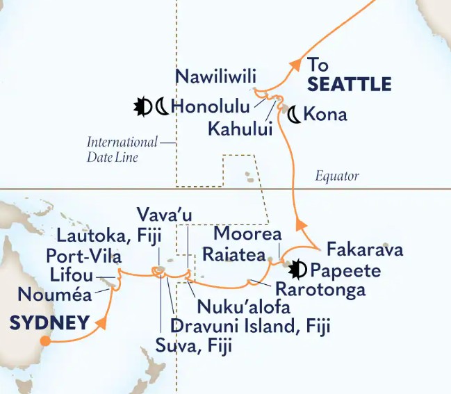 Toutes les escales et les amplitudes horaires indiquées sont données à titre indicatif et sont susceptibles d’être modifiées par les compagnies maritimes à tout moment, avant le départ ou pendant la croisière.