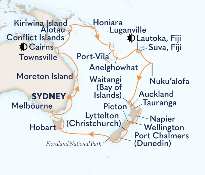 Toutes les escales et les amplitudes horaires indiquées sont données à titre indicatif et sont susceptibles d’être modifiées par les compagnies maritimes à tout moment, avant le départ ou pendant la croisière.