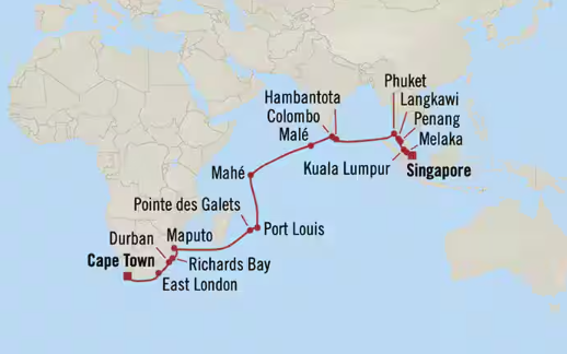 • Service de navette OFFERT du navire au centre-ville dans de nombreux ports d’escale – pour une valeur allant jusqu’à U$50 par jour et par passager