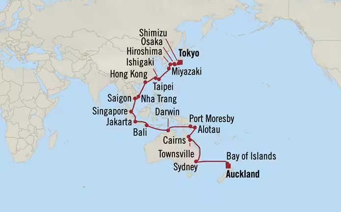 Grand Voyage : Japon vers la Nouvelle-Zélande - De Yokohama (Tokyo) à Auckland - REG241029A