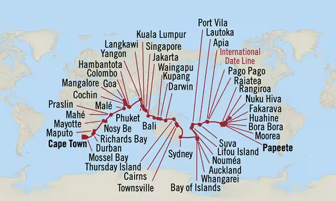 • Service de navette OFFERT du navire au centre-ville dans de nombreux ports d’escale – pour une valeur allant jusqu’à U$50 par jour et par passager
