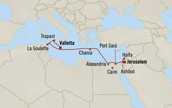 Israël, Égypte et Tunisie, de Jérusalem (Haïfa) à La Valette