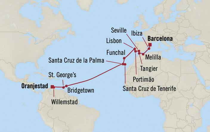 Les Caraïbes et Europe, d’Oranjestad à Barcelone