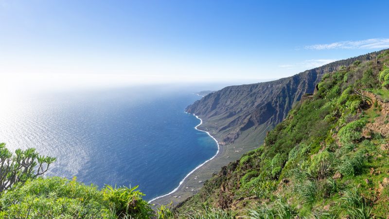 Incontournable lors d’une visite à La Palma, le Parc National de la Caldera de Taburiente, cratère de 8 kilomètres de diamètre, qui abrite une végétation dense et de vertigineuses cascades. Pour se détendre après avoir visité l’arrière-pays, direction Puerto Naos, petit village de la côte est, avec ses palmiers, sa magnifique plage de sable noir et ses eaux turquoise… Un petit paradis sur terre !