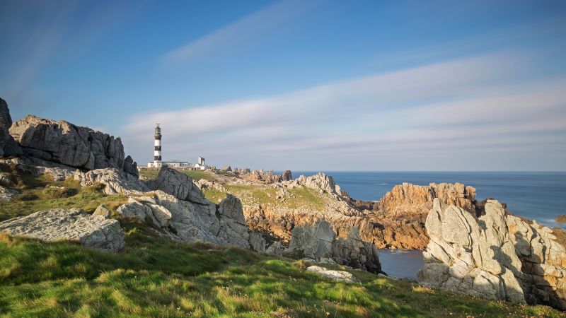 Au large de la pointe bretonne, Ouessant est « l’île du bout du monde » et un véritable petit bijou au charme envoûtant. Côtes déchiquetées, falaises vertigineuses et petites criques sauvages, l’île est un régal pour les yeux mais un cauchemar pour les navigateurs. Les éléments sont redoutables et les tempêtes spectaculaires. Cinq phares gardent l’île et protègent les marins, dont le célèbre Phare de la Jument, construit en pleine mer, et connu par gros temps pour les impressionnantes vagues qui se fracassent sur sa structure.