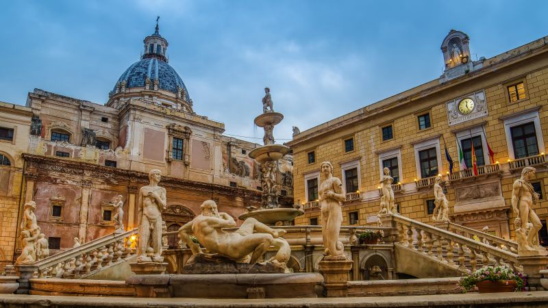 Palerme abrite un centre historique très riche qui évoque un patrimoine exceptionnel tant du point de vue de son abondance que de sa diversité. La ville est également connue pour ses nombreux marchés à l'ambiance unique. Deux grands boulevards divisent la cité, le Corso Vittorio Emanuele et la Via Maqueda. Les deux se rencontrent dans le cœur de la vieille ville à la Quattro Canti di Città.