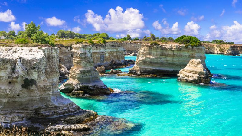 Otrante est un joli petit bourg situé dans la région des Pouilles. Il jouit d’un cadre exceptionnel, niché en bordure de la mer Adriatique. Son imposant château du 15ème siècle domine la jolie cité et sa vieille ville. Promenez-vous parmi les ruelles de la vieille ville, décor digne d’une carte postale. Vous pourrez, également, y admirer l’église byzantine appelée Chiesa di San Pietro érigée entre le 9ème et le 10ème siècle.