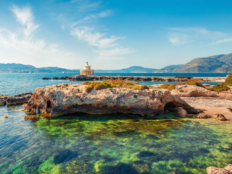Capitale de l’île de Céphalonie, au large de la côte ouest de la Grèce continentale, Argostoli est une ville moderne et cosmopolite. Située sur une magnifique baie et entourée de montagnes et de forêts verdoyantes, la ville possède une très belle promenade pavée, bordée de palmiers. La rue principale, piétonisée, abrite de nombreuses boutiques d’artisanat local, ainsi que des cafés et restaurants où déguster la délicieuse cuisine locale. A l’entrée du port le phare de Saint-Théodore est un des édifices les plus emblématiques de l’île.